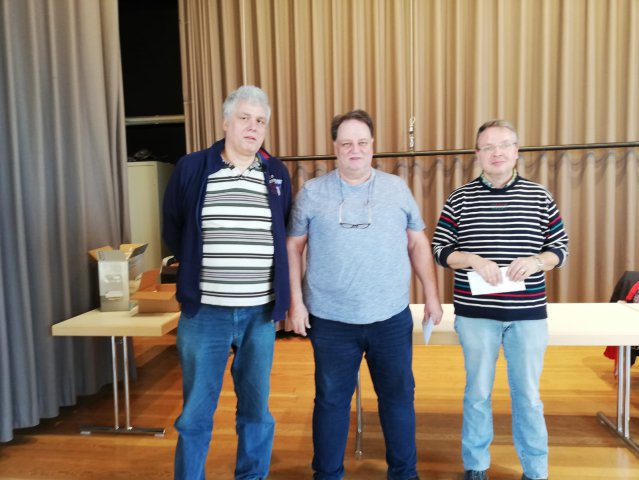 Zum ersten Turnier des neuen Jahres fanden 143 Skatspieler aus Deutschland und dem benachbarten Ausland den Weg in die Europahalle Castrop-Rauxel. In einer äußerst spannenden letzten Serie setzte sich am Ende Yahya Saglam (Bildmitte) gegen Horst Neumann (rechts) und Eddi Seferovic (links) durch.